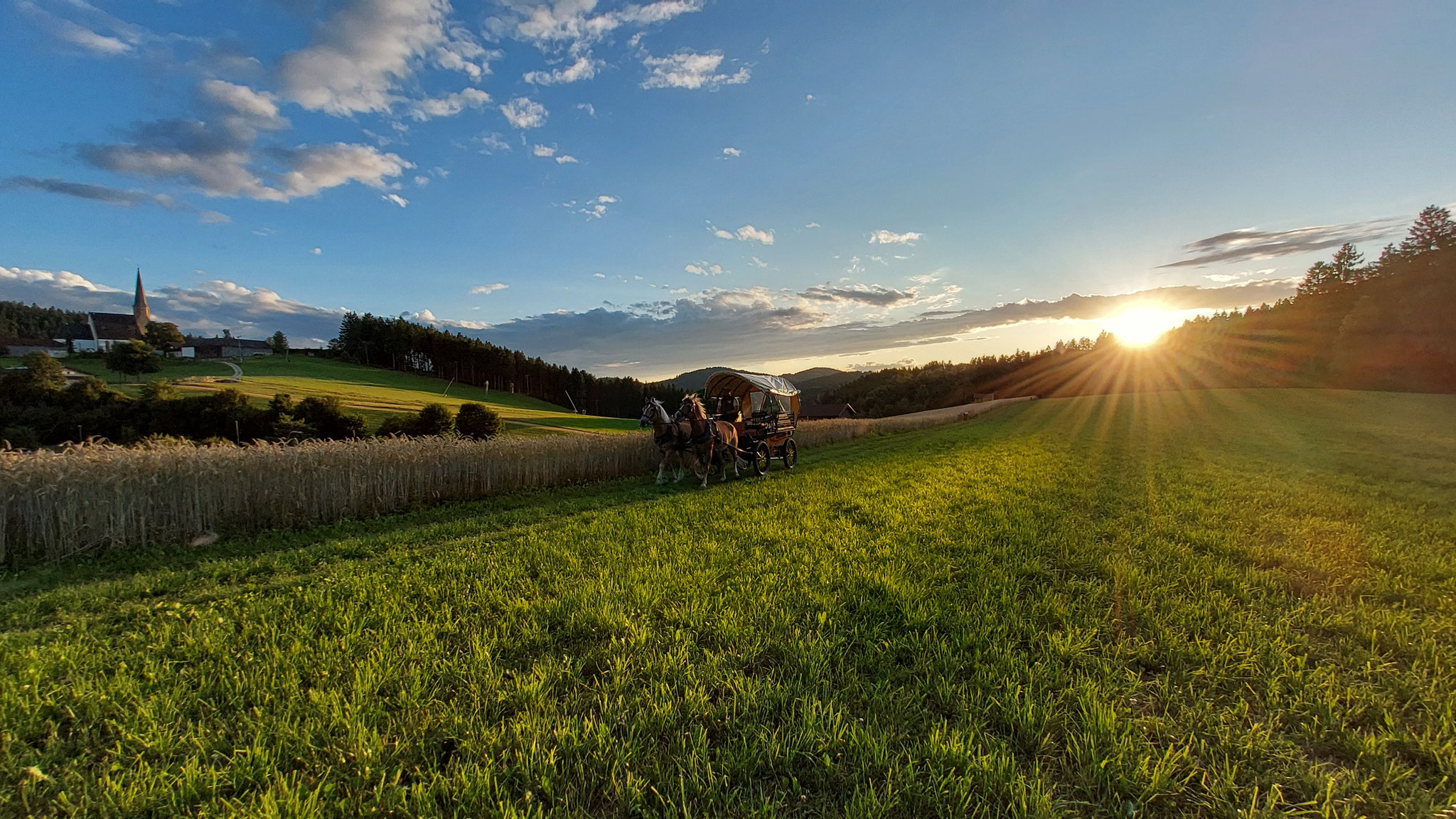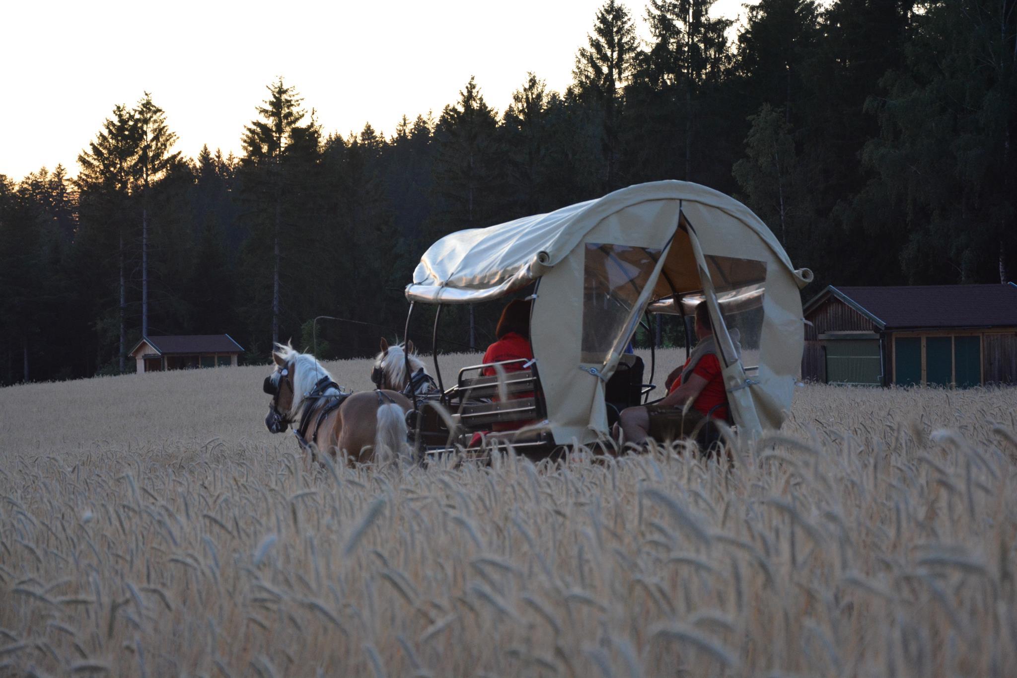Wir empfehlen geschlossene Schuhe und eine Sommerjacke für die Kutschenfahrt.