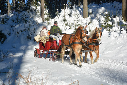 Ab 2 Personen: Gesamtpreis € 155,00 für Pferdeschlittenfahrt und Aufwärmgetränk (Einkehr nicht inkl.)
